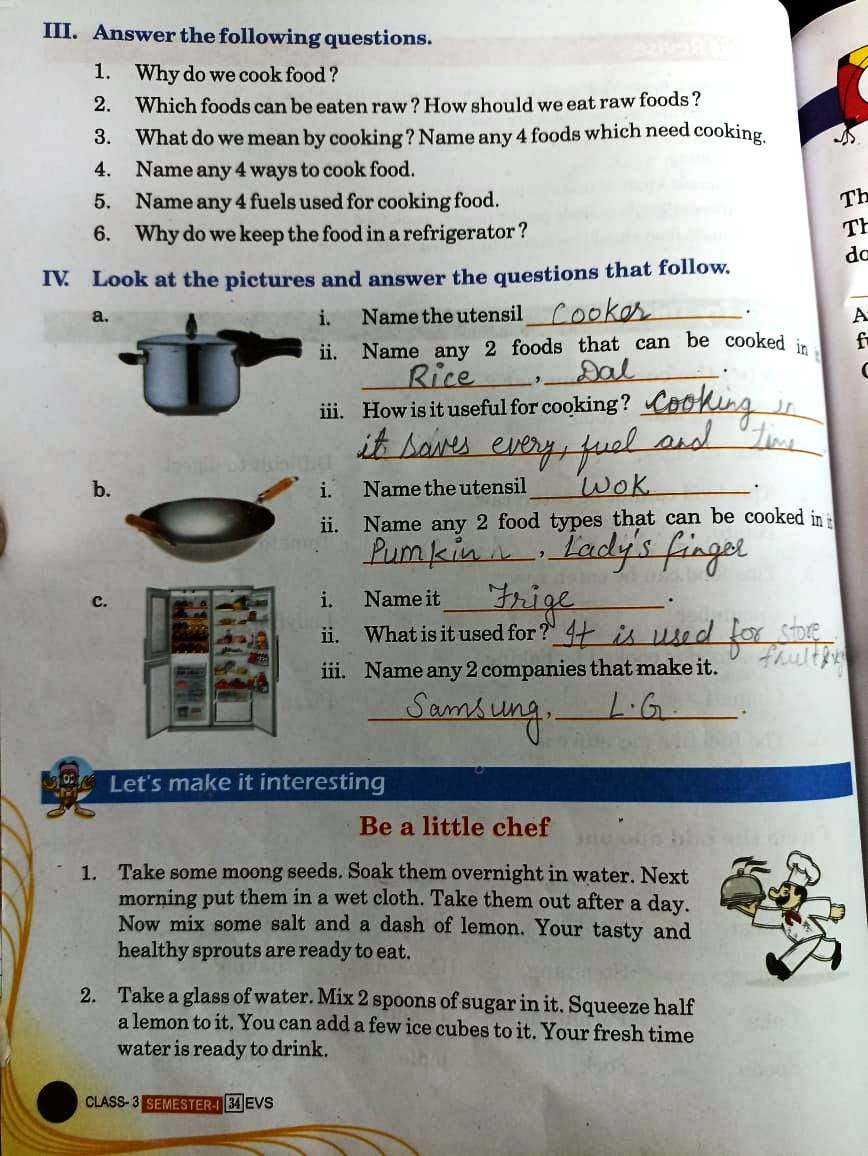 Class-3 Subject EVS Chapter-6 COOKING FOOD